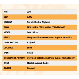 Genetika : 70% Indica / 30% Sativa (70% fialová)